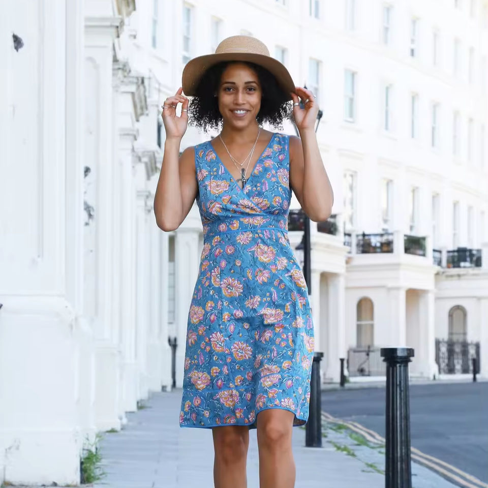 ชุดเดรสยาวผ้าฝ้ายอินเดียสไตล์วินเทจชุดเดรสลำลองป้องกันไฟฟ้าสถิตย์พิมพ์ด้วยมือปรับสายรัดเอวได้สำหรับฤดูร้อน