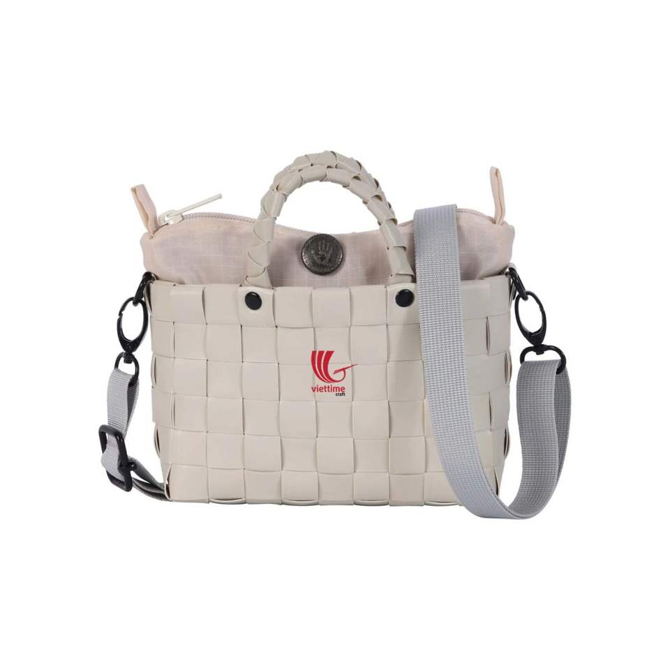 กระเป๋าถือสตรีสไตล์วินเทจทำด้วยมือถุงพลาสติก PP ทอลายปักมีพู่ขนนกกระเป๋าถืองานหัตถกรรมเวียดนาม