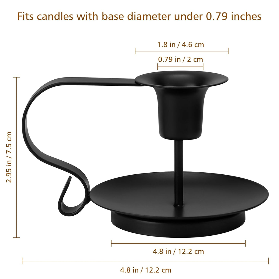 เชิงเทียนโลหะสไตล์วินเทจพร้อมฐานกลมและด้ามจับเทียนเหล็กสีดำแบบพกพาสำหรับเทียนเรียว