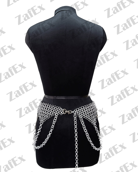 กระโปรงโซ่โลหะสไตล์วินเทจประดับกระโปรงมินิพร้อมขอบสำหรับระบำหน้าท้องคอสเพลย์และงานแสดงสินค้า