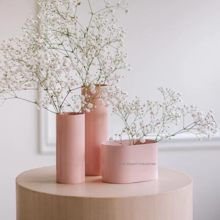 แจกันดอกไม้รูปทรงกระบอกโลหะสไตล์วินเทจสีฟ้าสำหรับงานแต่งงานบ้านโต๊ะตกแต่งบ้านทำด้วยมือ