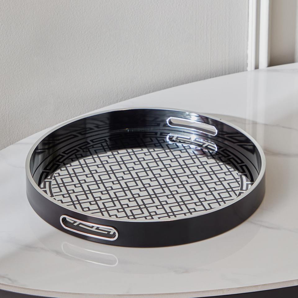 ถาดเสิร์ฟโลหะเคลือบสไตล์วินเทจ งานแฮนด์เมด สำหรับใช้ในบ้าน โรงแรม ร้านอาหาร