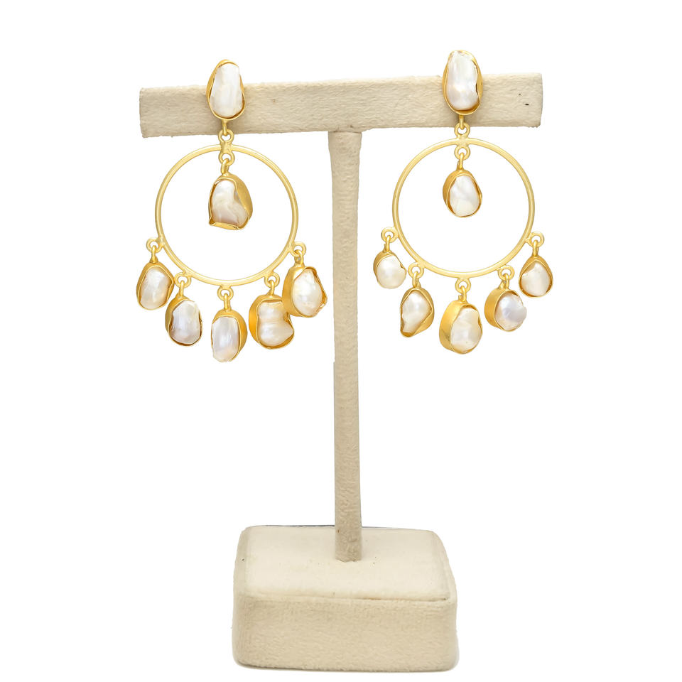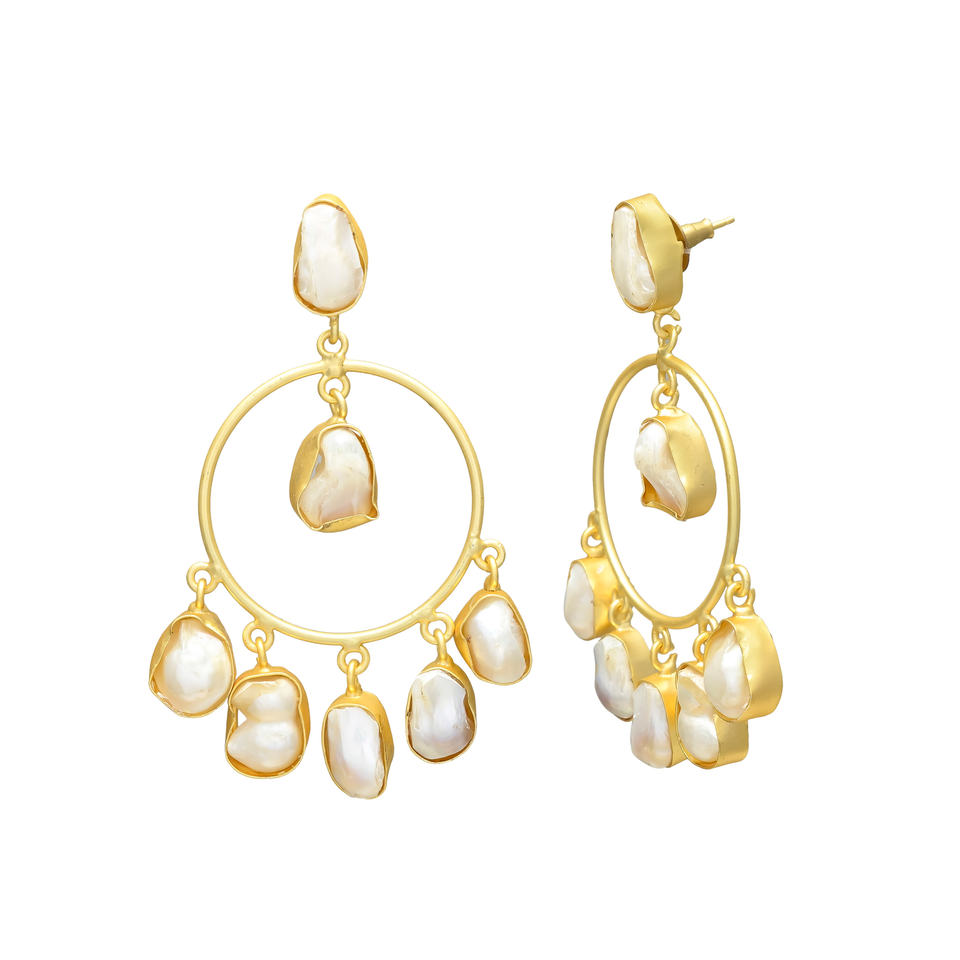 ต่างหูห่วงมุกหอยนางรมสีขาวสไตล์วินเทจ ประดับมุกบาร็อคธรรมชาติ ชุบทอง 24K วัสดุทองเหลือง สำหรับผู้หญิง ใส่ในงานแต่งงาน