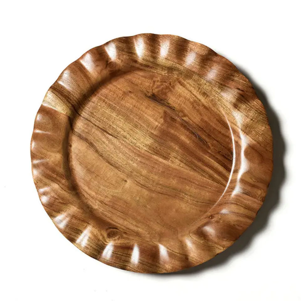 จานรองแก้วไม้มะม่วงสไตล์วินเทจ ลายแกะสลักรูปต้นไม้ จานไม้ทรงกลมสำหรับใช้ในบ้านและงานตกแต่ง