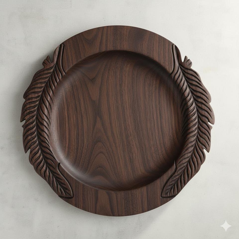 จานรองแก้วไม้มะม่วงสไตล์วินเทจ ลายแกะสลักรูปต้นไม้ จานไม้ทรงกลมสำหรับใช้ในบ้านและงานตกแต่ง