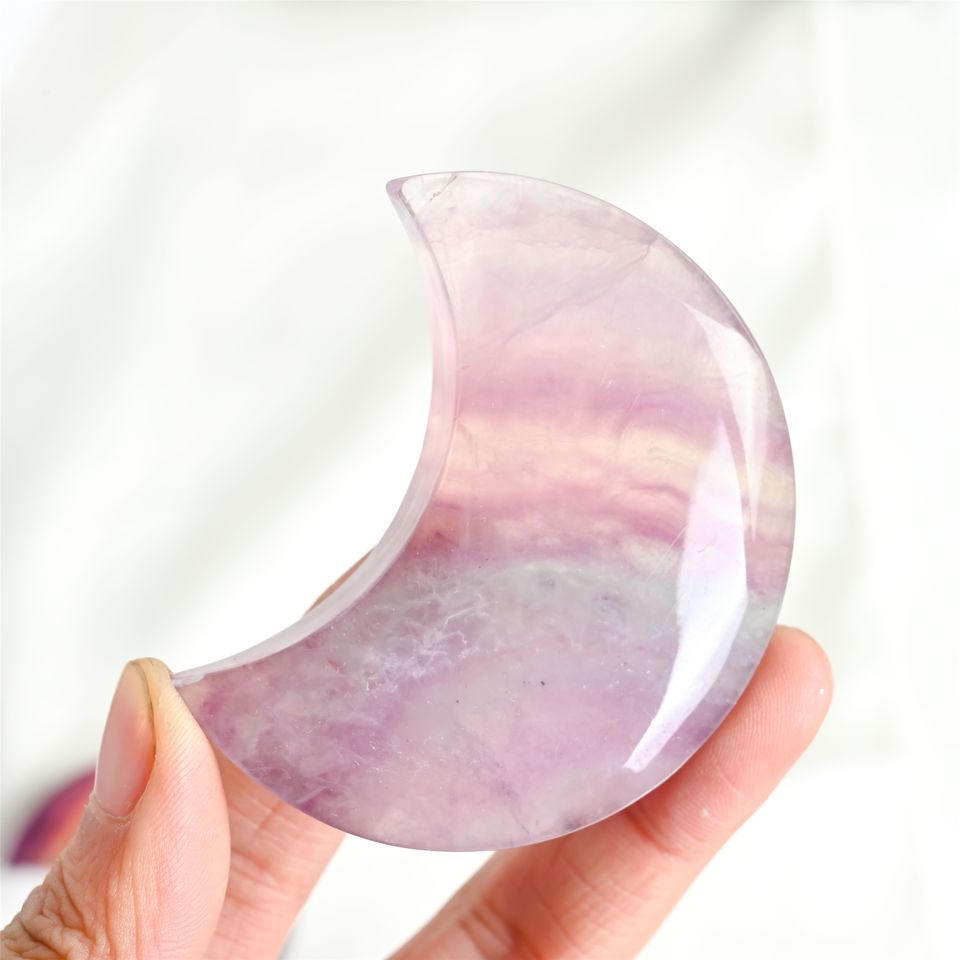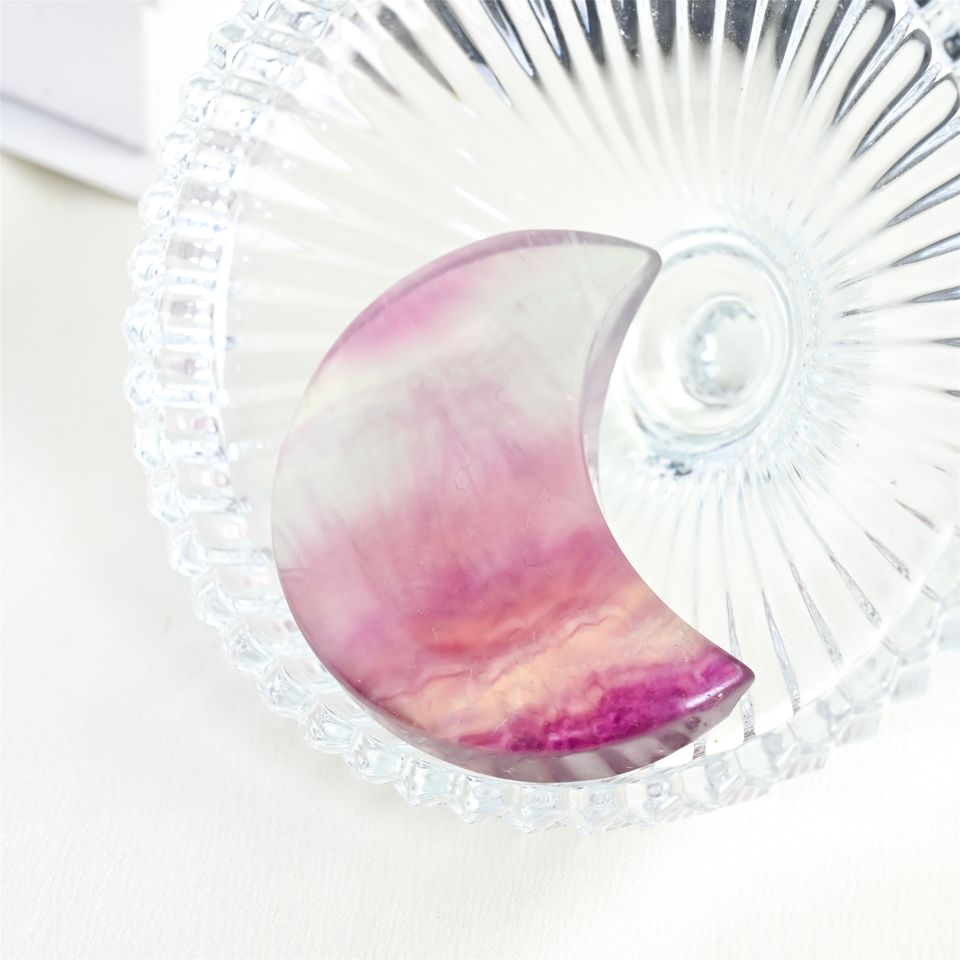 งานแกะสลักคริสตัลควอตซ์ฟลูออไรต์สีรุ้งธรรมชาติสไตล์วินเทจ ราคาโรงงาน ของตกแต่งรูปพระจันทร์และของขวัญ