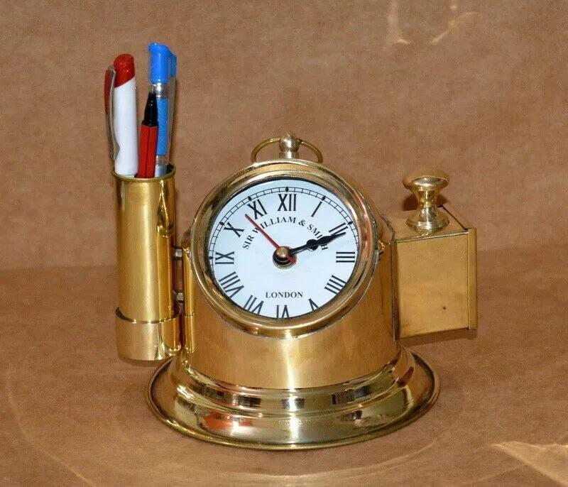 นาฬิกาตั้งโต๊ะทำจากทองเหลืองลายการเดินเรือสไตล์วินเทจนาฬิกาแขวนผนังพร้อมที่ใส่ปากกาธีมของขวัญจากผู้ผลิต