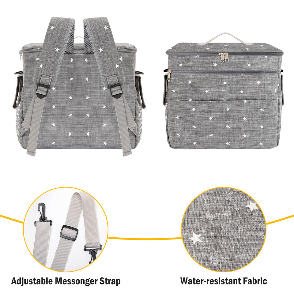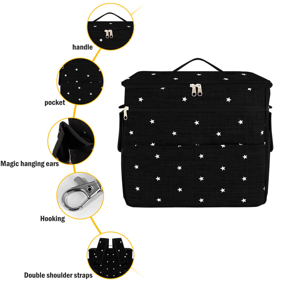 กระเป๋าผ้าออกซ์ฟอร์ดแบบพกพาสไตล์วินเทจสำหรับผู้หญิงกระเป๋าอเนกประสงค์สะพายไหล่คู่สำหรับเด็กทารกที่แขวนกันน้ำมีซิปปิด