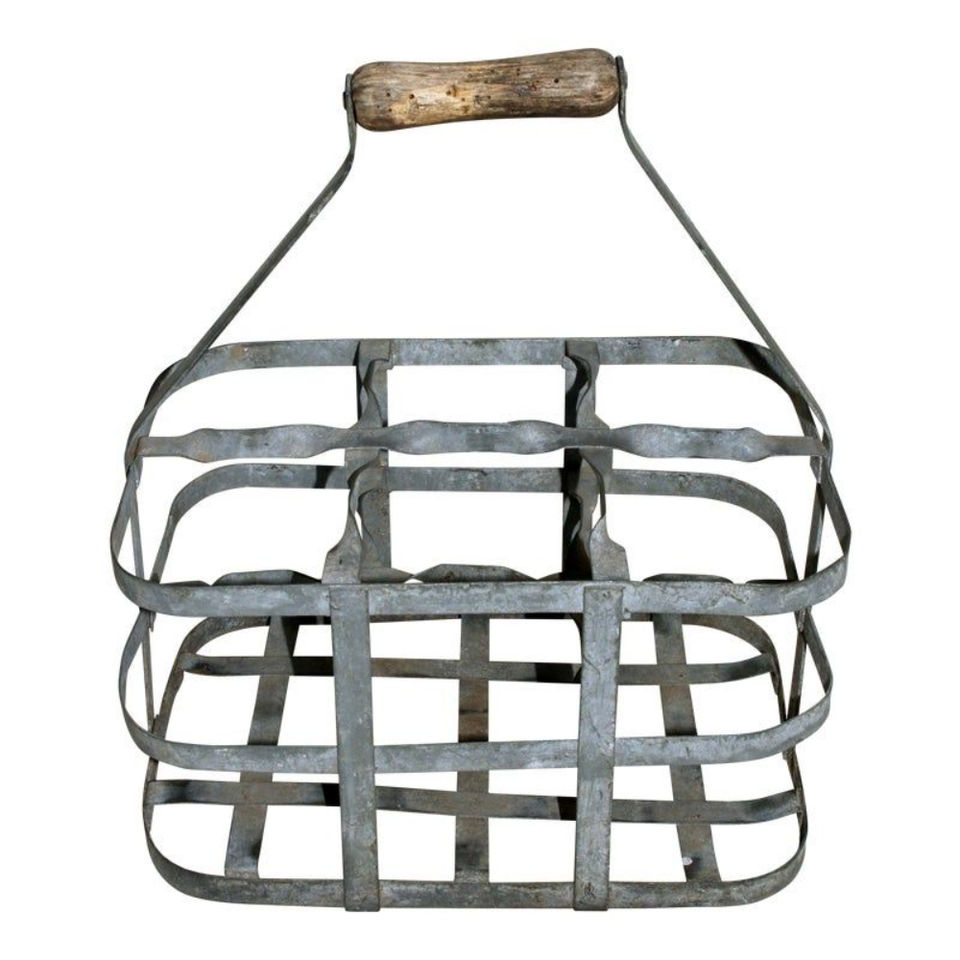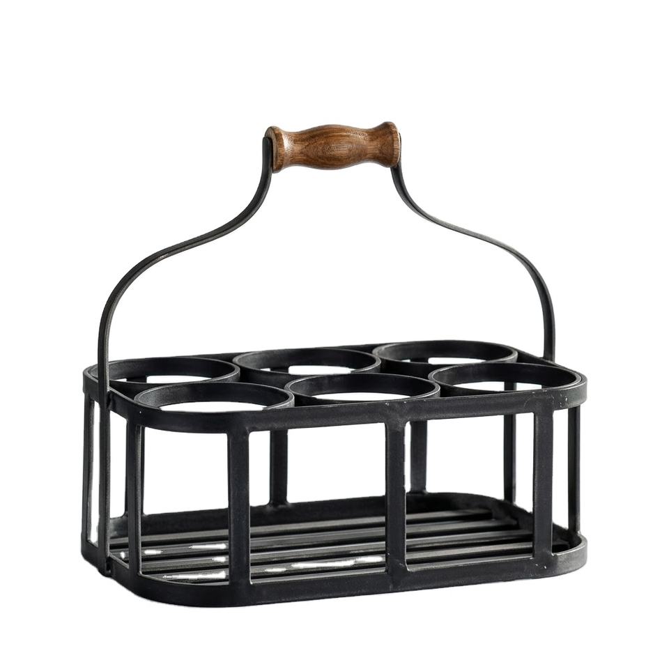 ชั้นวางไวน์โลหะแบบตั้งโต๊ะ 6 ขวด ทำจากลวดเหล็กเคลือบสีฝุ่นสไตล์วินเทจ พร้อมที่จับไม้สำหรับจัดเก็บ
