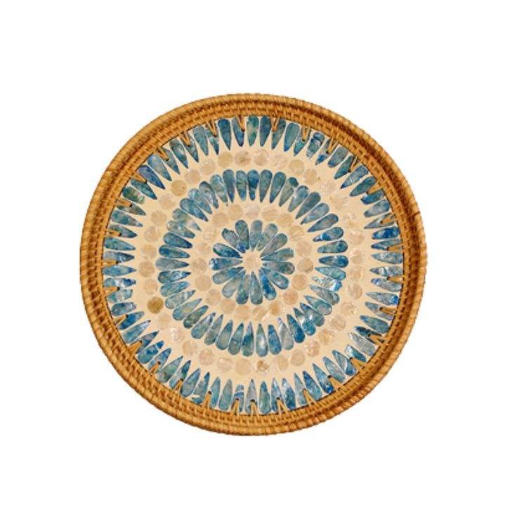 ถาดหวายอเนกประสงค์สไตล์วินเทจ, ถาดหวายและแม่ของไข่มุกทำด้วยมือตะกร้าเก็บของในครัวทรงกลมถาดที่ยั่งยืน