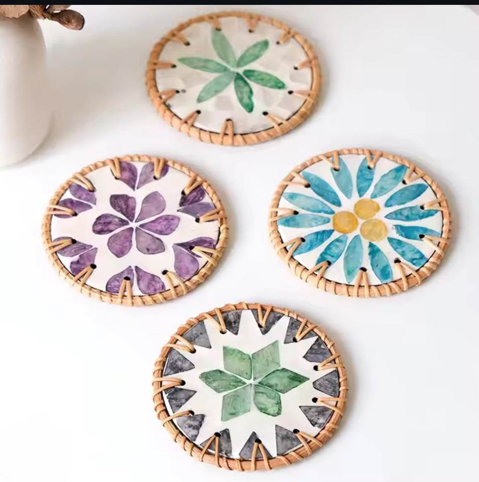 ชุดจานรองแก้วหวายสไตล์วินเทจ 4 ชิ้น พร้อมที่วางหวายและแผ่นรองแก้ว ราคาดีที่สุด