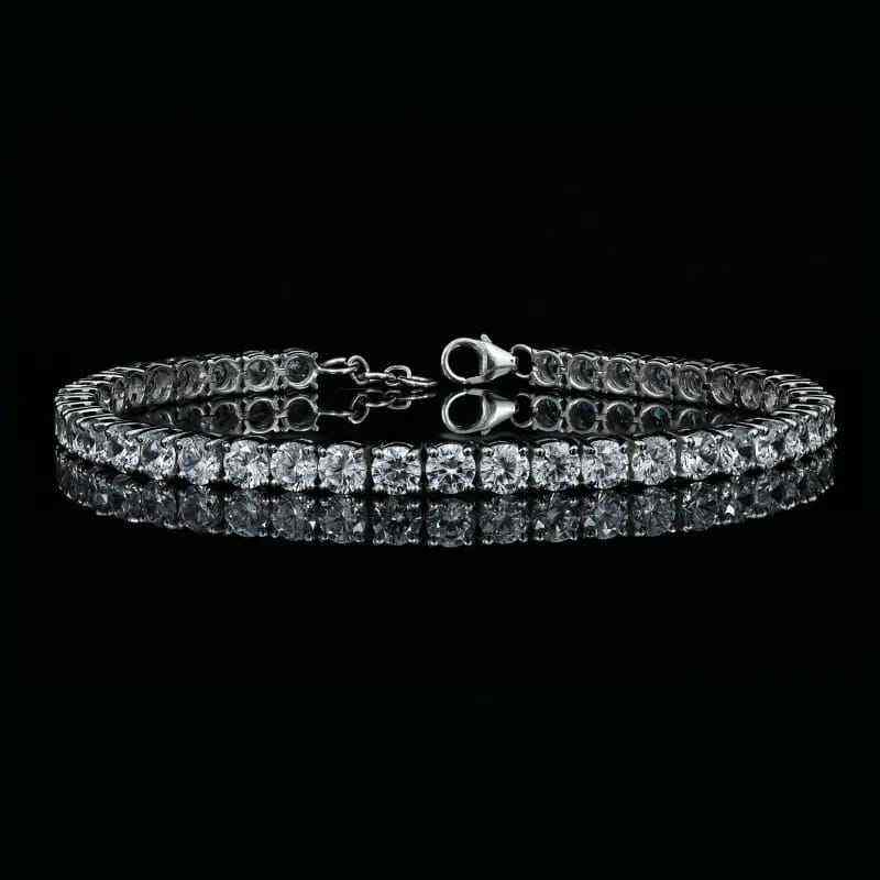 สร้อยข้อมือเพชรโมอิสเพชรทรงกลมสไตล์วินเทจสำหรับเทนนิสสร้อยข้อมือแฟชั่นหมั้น925เงินสเตอร์ลิง
