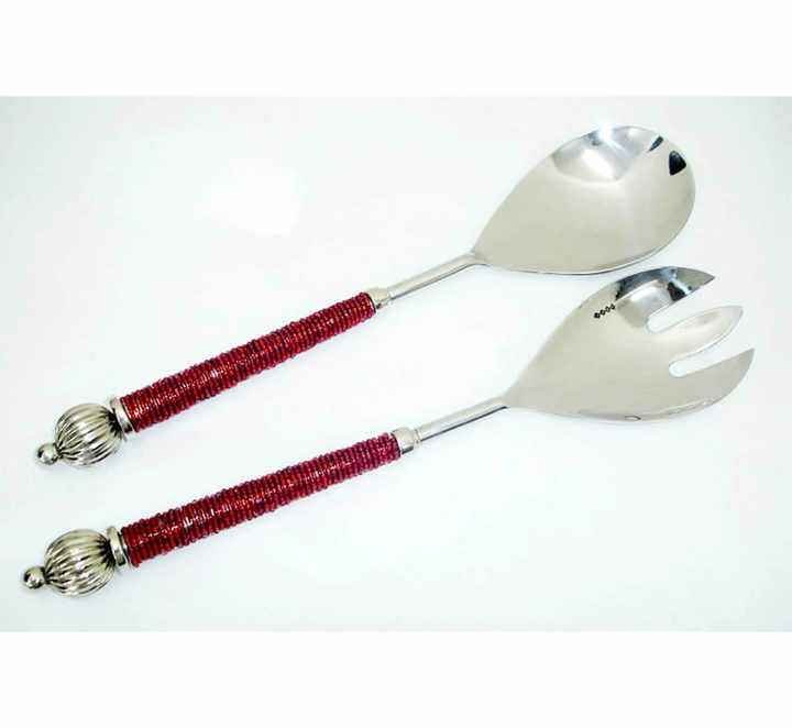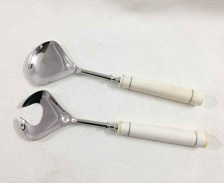 ชุดเซ็ตสลัด2ชิ้นสไตล์วินเทจทำจากสแตนเลสพร้อมที่จับช้อนและส้อมอะคริลิค