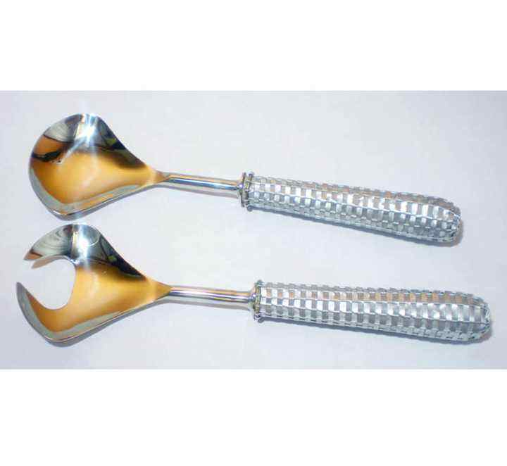 ชุดเซ็ตสลัด2ชิ้นสไตล์วินเทจทำจากสแตนเลสพร้อมที่จับช้อนและส้อมอะคริลิค