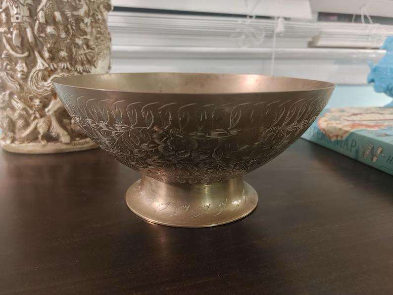 ชามเสิร์ฟสีเงินสไตล์วินเทจสลักลายดอกไม้ประดับด้วยรายละเอียดงานปาร์ตี้ที่ทนทานและเป็นมิตรต่อสิ่งแวดล้อมแกะสลัก