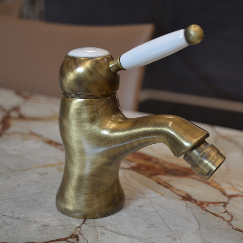 ก๊อกผสมน้ำสำหรับบิเดต์ทองเหลืองแท้สไตล์วินเทจ พร้อมก๊อกหมุนได้ 1 ด้าม สีบรอนซ์โบราณ ทนทาน ผลิตในอิตาลี