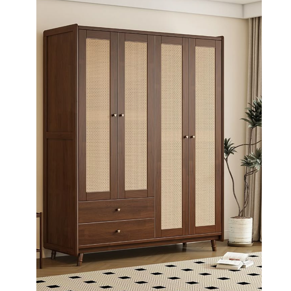 ตู้เสื้อผ้าไม้สักแท้สไตล์วินเทจ ตู้ไม้ทำมือแข็งแรงทนทานสำหรับเฟอร์นิเจอร์ห้องนอน