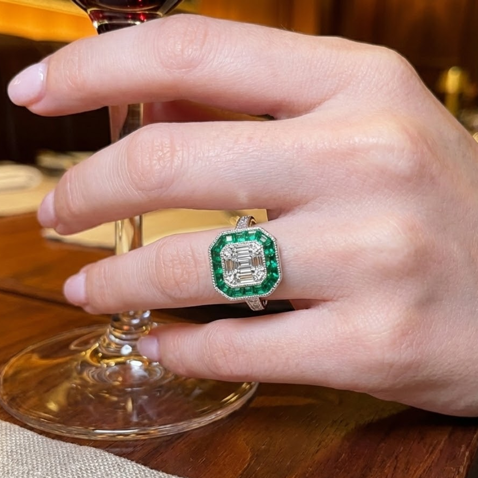 แหวนทอง 18k ดีไซน์มรกตฟิลลิกรี สไตล์วินเทจ ประดับเพชรแท้ ขายส่ง เครื่องประดับอัญมณีธรรมชาติ คุณภาพดี แหวนเครื่องประดับ