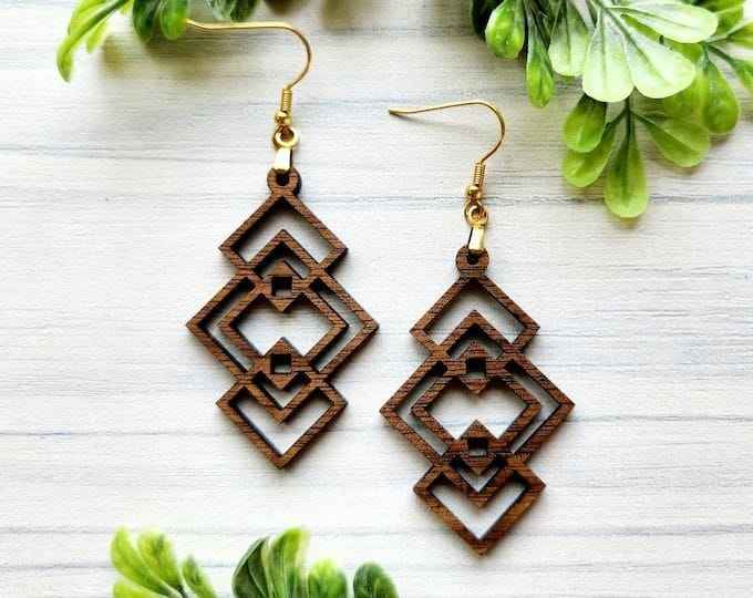 ต่างหูห่วงไม้ทรงสี่เหลี่ยมสไตล์วินเทจเครื่องประดับแฟชั่นทางศาสนาสำหรับผู้หญิงของขวัญงานหมั้นสำหรับงานเลี้ยง