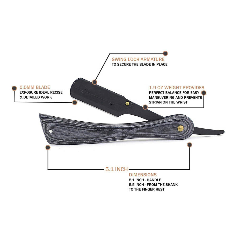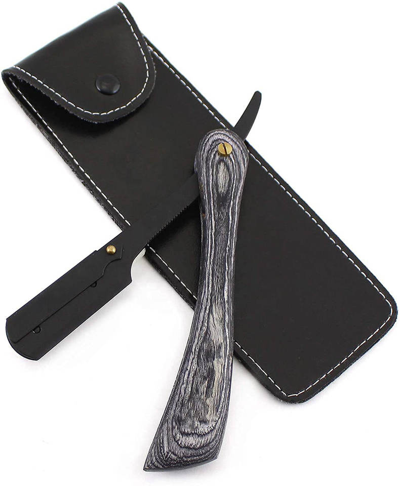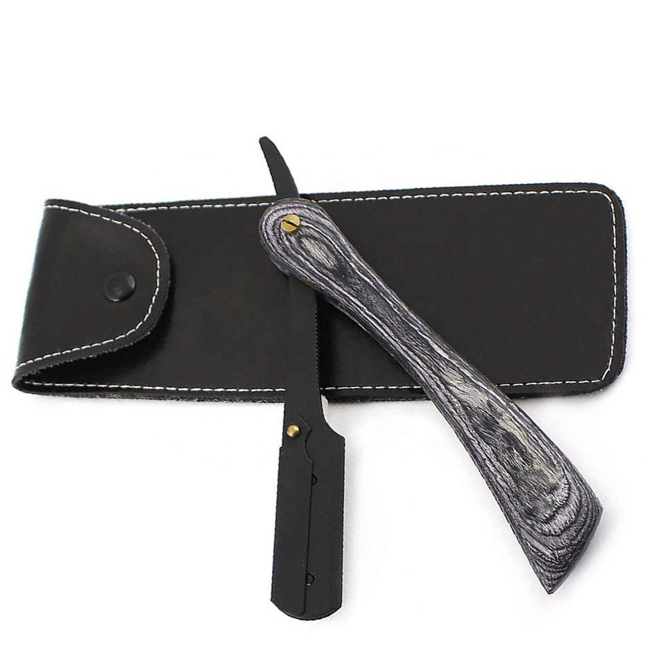 มีดโกนหนวดใบมีดสแตนเลสสำหรับร้านตัดผมแบบเปียกด้ามจับทำจากไม้โกนหนวดตรงสไตล์วินเทจ