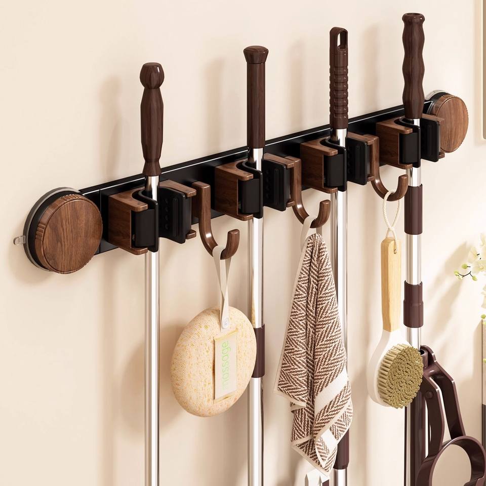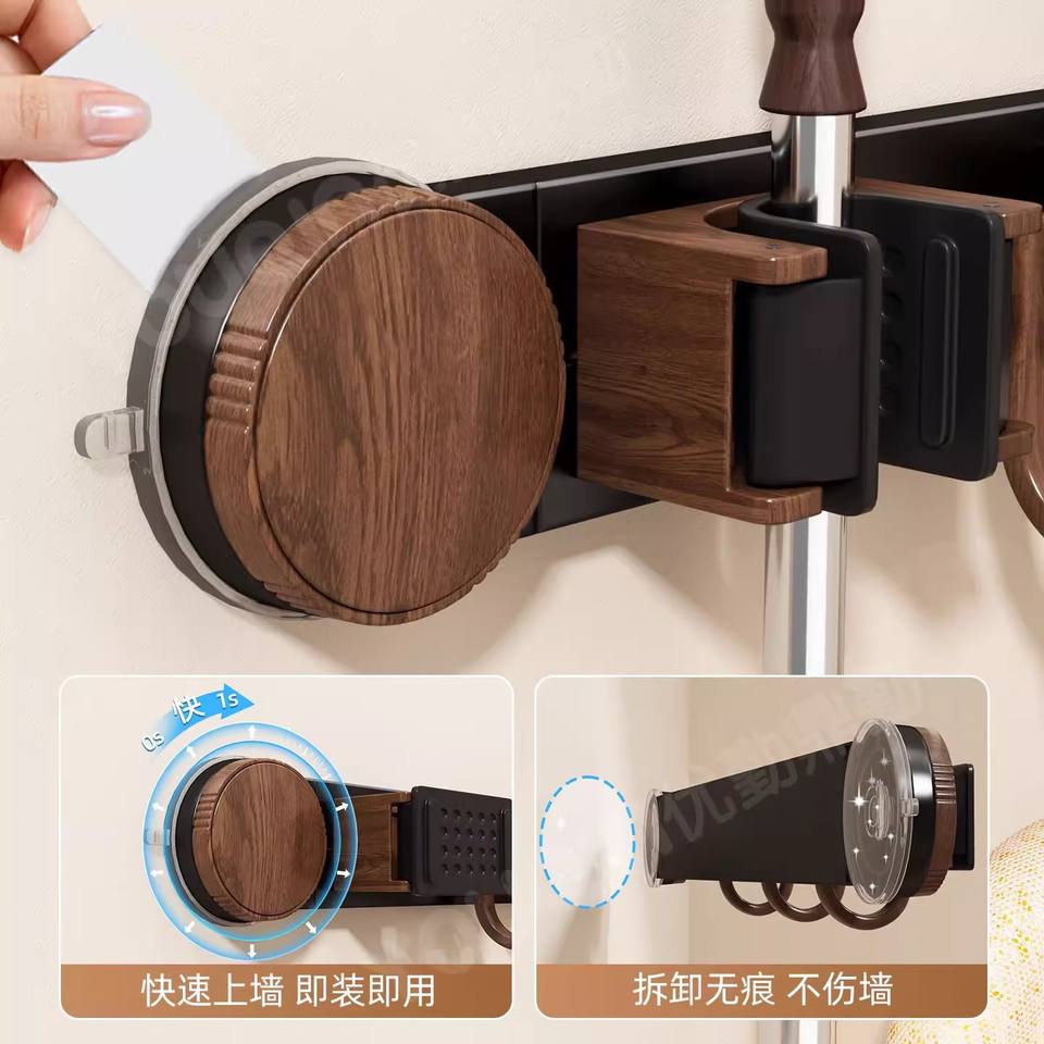 ที่แขวนไม้ถูพื้นแบบวินเทจ ติดผนังแบบสุญญากาศ รูปทรงสี่เหลี่ยม ไม่ต้องเจาะ ไม่ต้องใช้สว่าน สำหรับไม้ถูพื้นและไม้กวาด