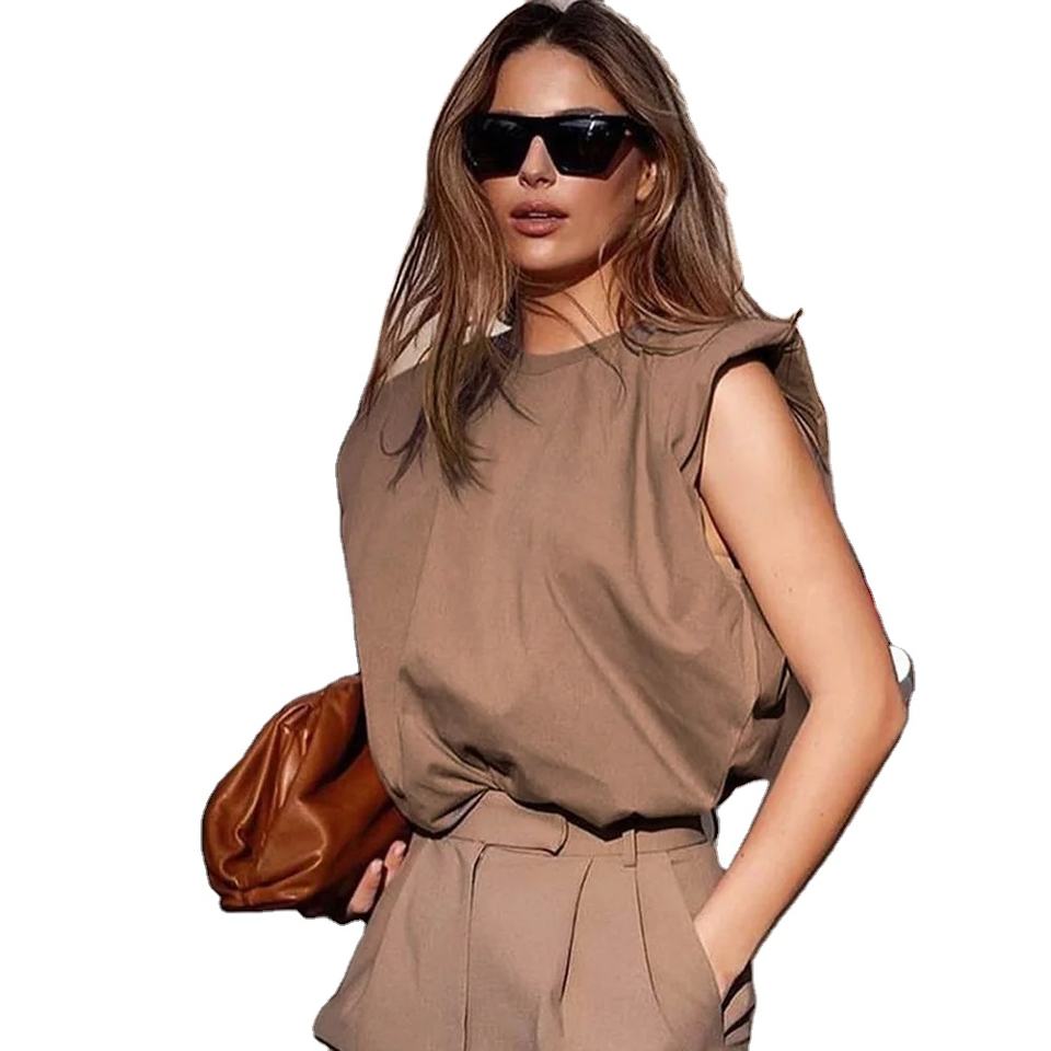 เสื้อยืดสไตล์วินเทจ เสื้อสวมหัวคอกลมสําหรับผู้หญิง เสื้อยืดแขนกุดผ้าฝ้าย เสื้อผ้าแฟชั่น ออฟฟิศเลดี้