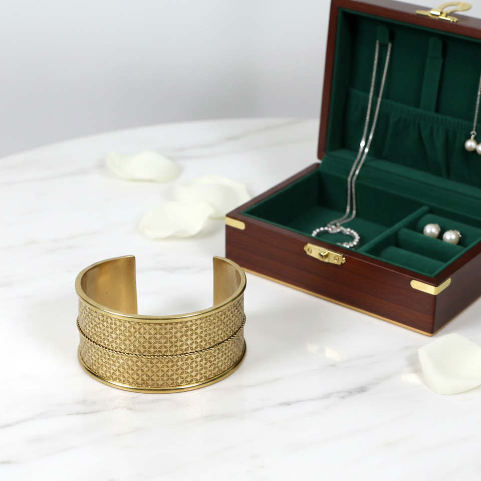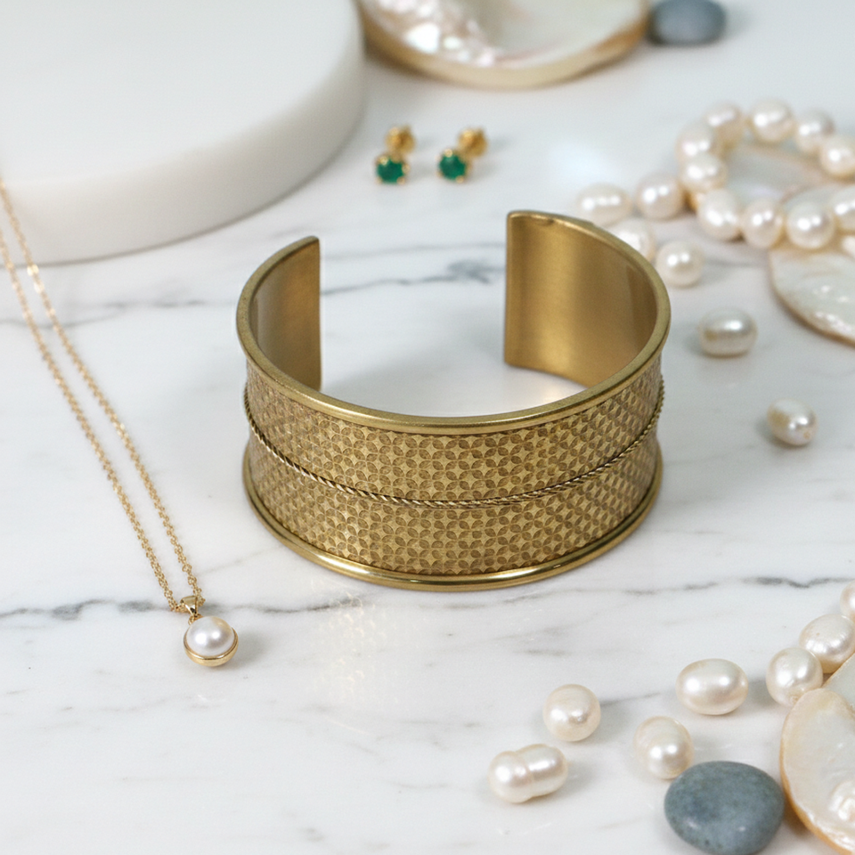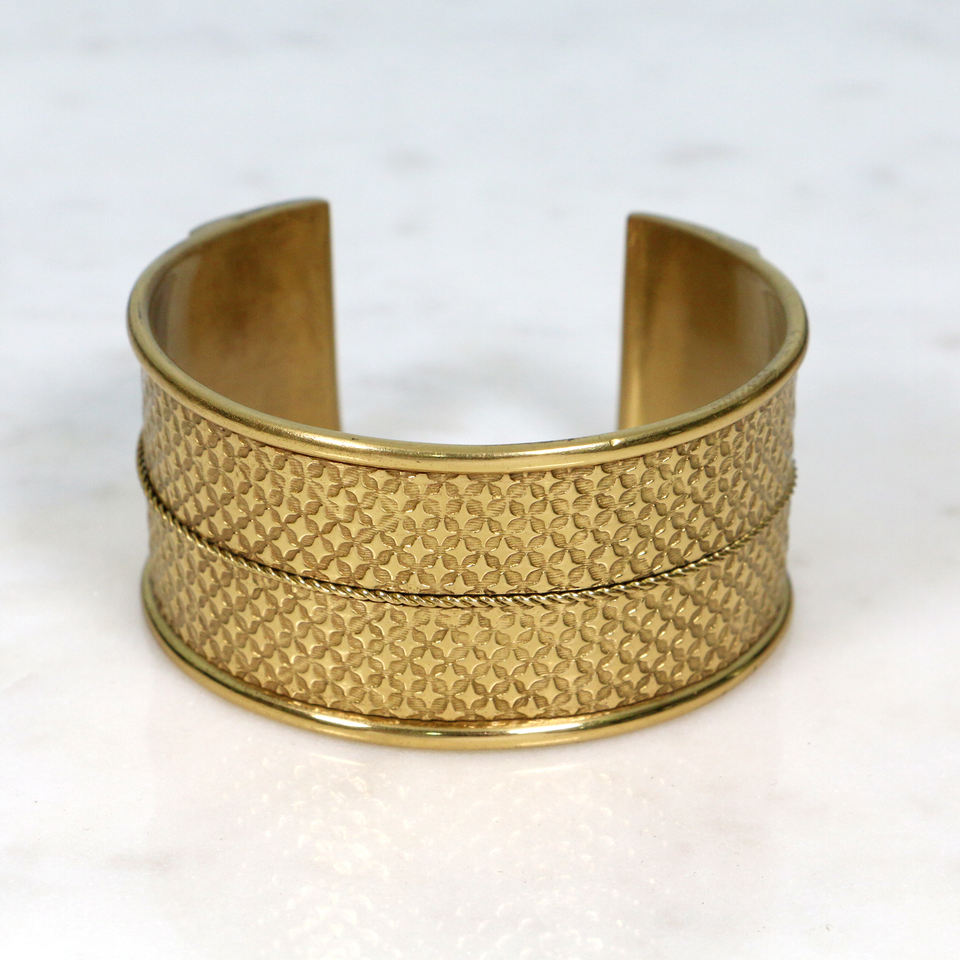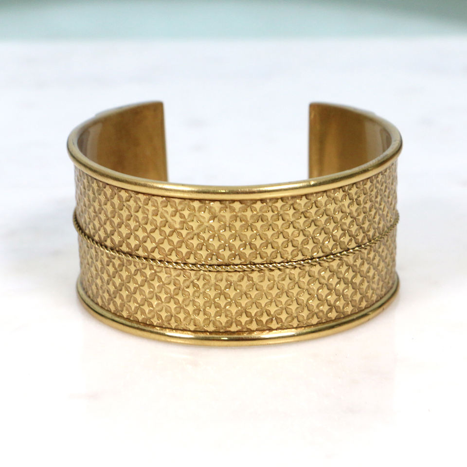 Vintage Style Textured Brass Cuff Bracelet - Etched Floral Pattern Gold Bangle - Bohemian Wide Open Cuff