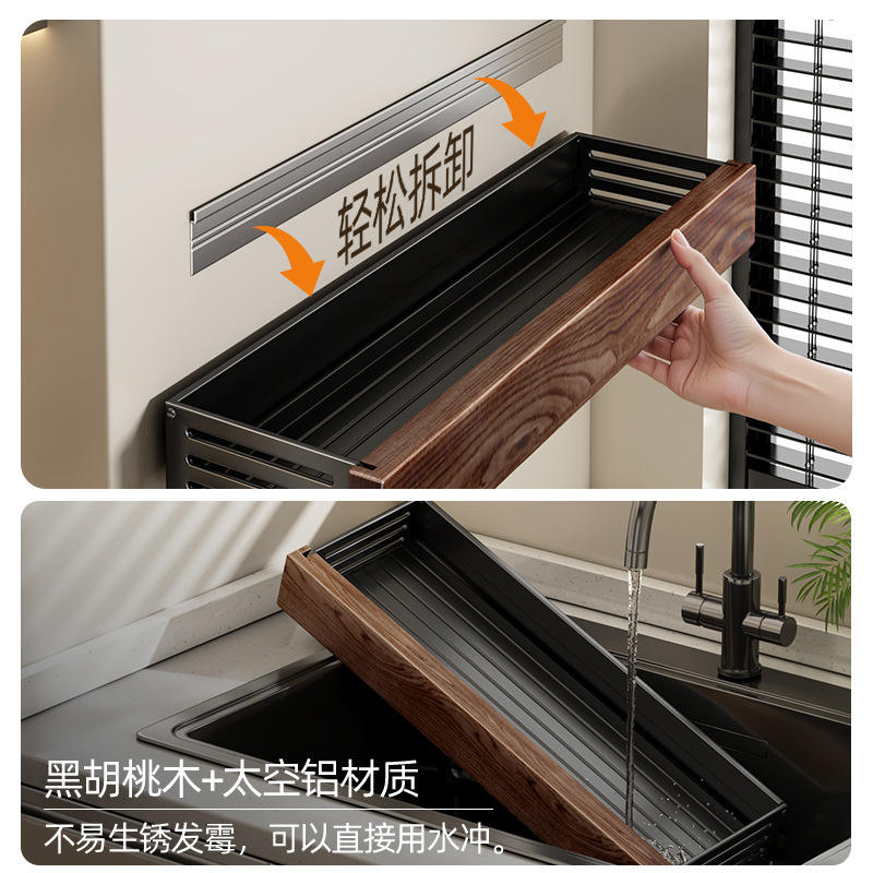 Part Number:Vintage-style walnut wood kitchen storage rack