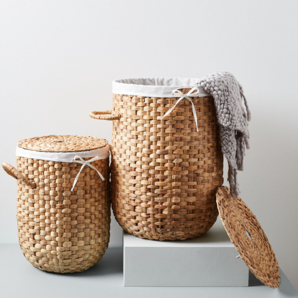 ตะกร้าผักตบชวาพร้อมฝาปิด ดีไซน์ทันสมัย