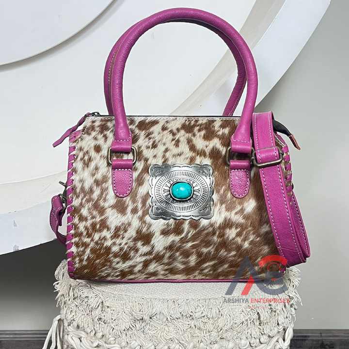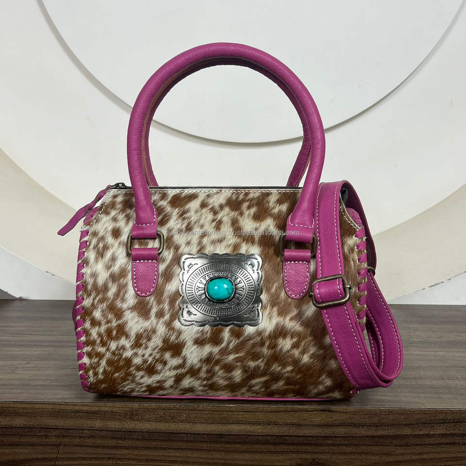 กระเป๋าหนังวัวแท้สไตล์วินเทจตะวันตก แบบเร็วทันใจ ใช้ได้หลากหลาย ทำด้วยมือ กระเป๋าเดินทางสำหรับทุกเพศ หนังมีขน เหมาะสำหรับผู้หญิง