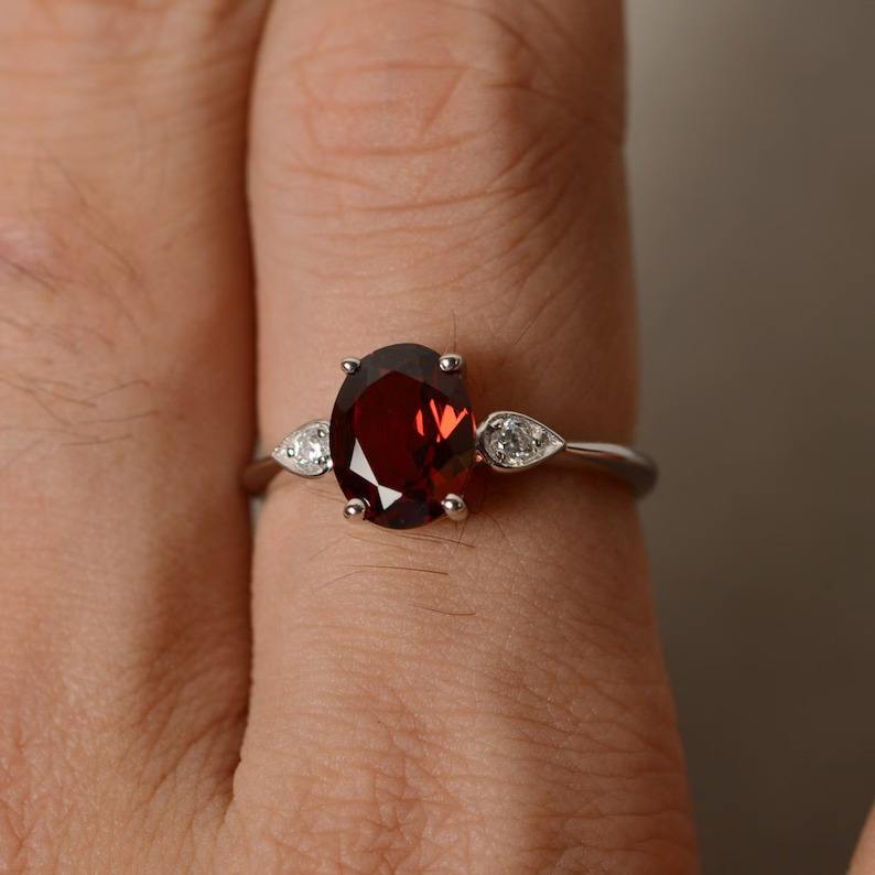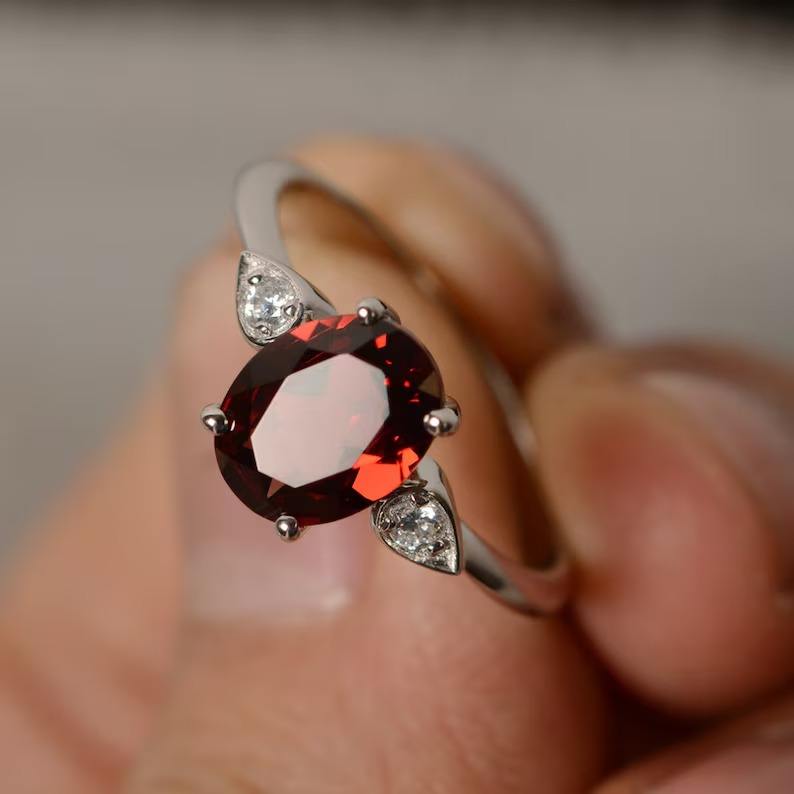 แหวนหมั้นทรงคู่รักประดับมุกน้ำจืดเงินแท้ 925 สไตล์วินเทจสำหรับผู้หญิง ประดับด้วยโกเมนสีแดงแบบฝังหนามเตย งานฝีมือจากผู้เชี่ยวชาญ