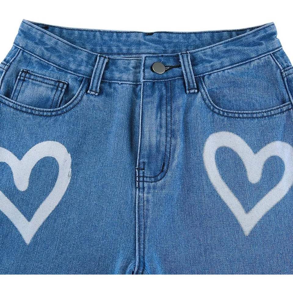 กางเกงยีนส์เอวสูงสำหรับผู้หญิงสไตล์วินเทจกางเกงเอวสูงพิมพ์ลายหัวใจขากว้างทรงหลวมสไตล์บอยเฟรนด์ใส่เล่นแนวสตรีทสำหรับสาววัยรุ่น