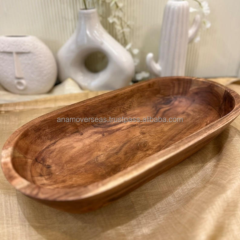 ชามแป้งไม้สไตล์วินเทจ | ถาดไม้แกะสลักด้วยมือสำหรับห้องครัวและของตกแต่ง