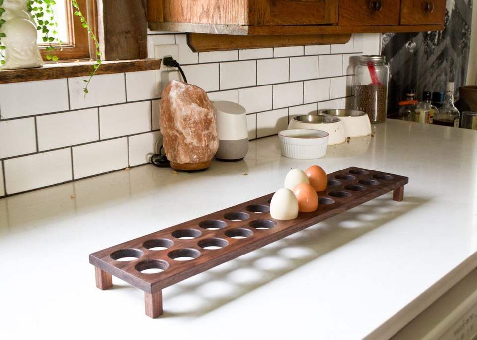 ชั้นวางไข่ไม้สไตล์วินเทจสำหรับบ้านแบบดั้งเดิมเพิ่มสัมผัสบ้านไร่แท้ให้กับการตกแต่งภายในห้องครัวแบบชนบท