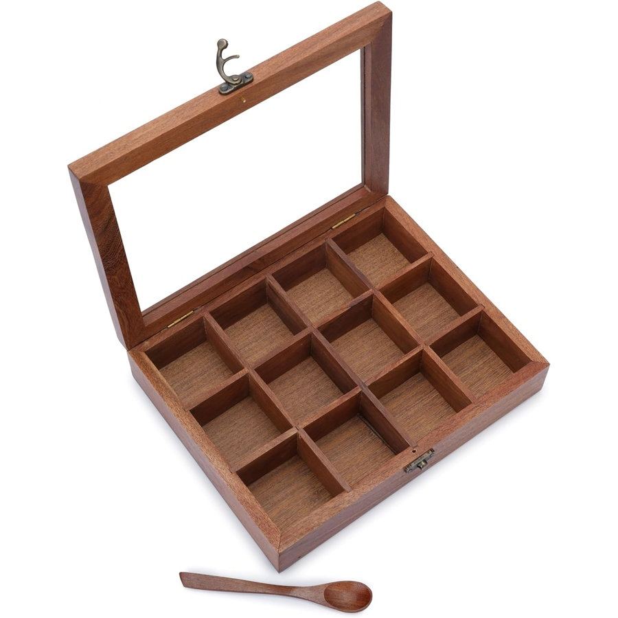 กล่องเก็บเครื่องเทศไม้สไตล์วินเทจพร้อมฝาปิดกล่องเก็บสมุนไพรและเครื่องเทศหลากหลายชนิดพร้อมเครื่องมือเครื่องเทศ