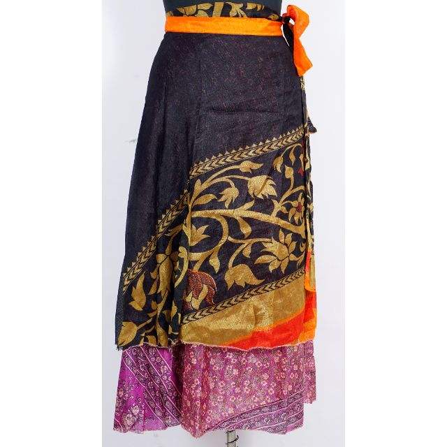 กระโปรงผ้าไหมเมจิกสองชั้นสไตล์วินเทจผ้าส่าหรียาวทรงโบฮีเมียนสำหรับเต้นรำ