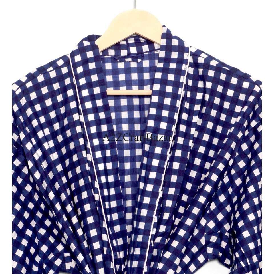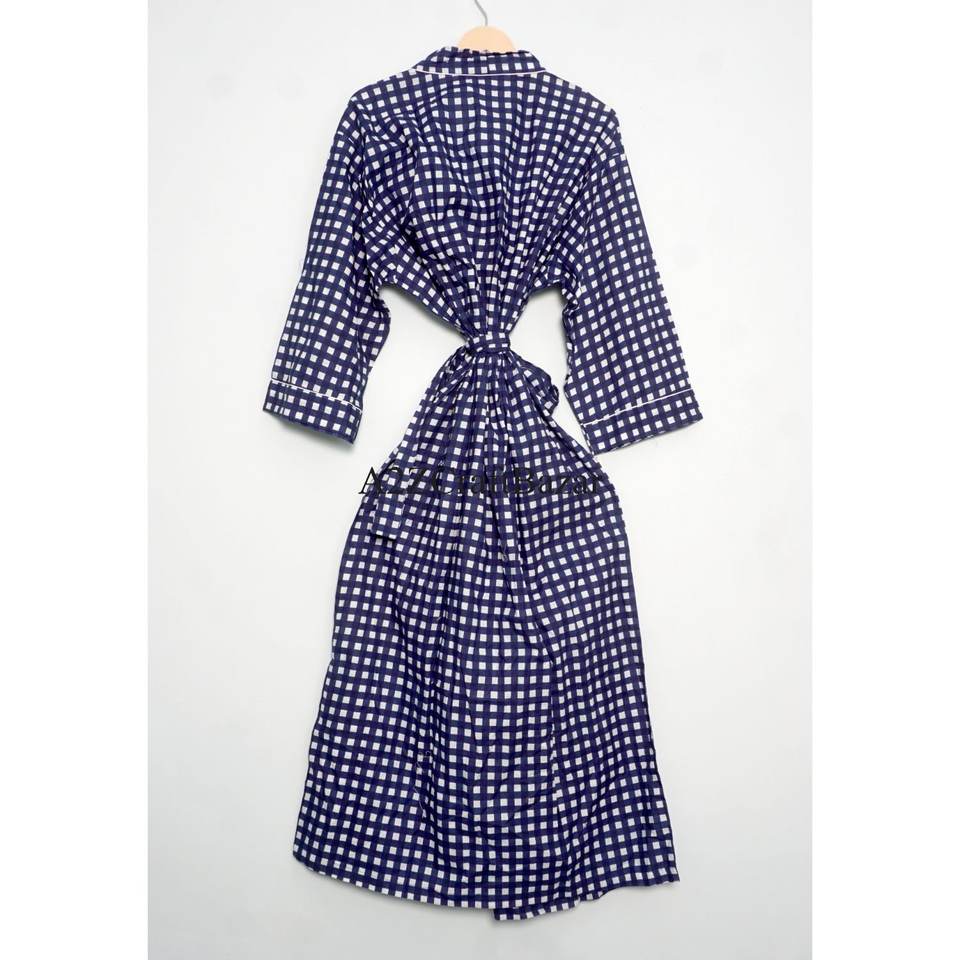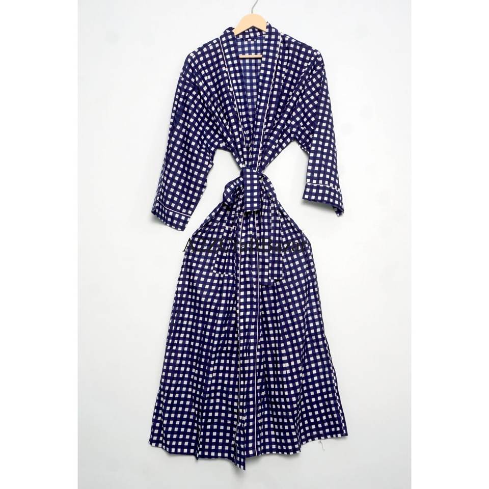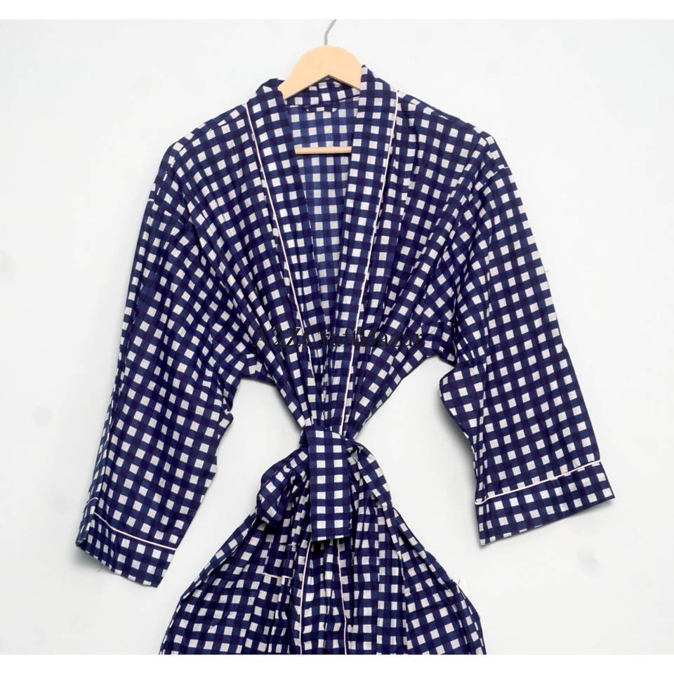 ชุดกิโมโนสไตล์วินเทจ ผ้าฝ้าย 100% เนื้อนุ่ม ระบายอากาศได้ดี เหมาะสำหรับใส่ไปชายหาด ชุดนอน หรือคลุมตัว ลายพิมพ์บล็อกด้วยมือ ความยาวเต็มตัว มีเชือกผูก
