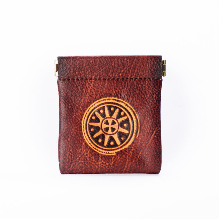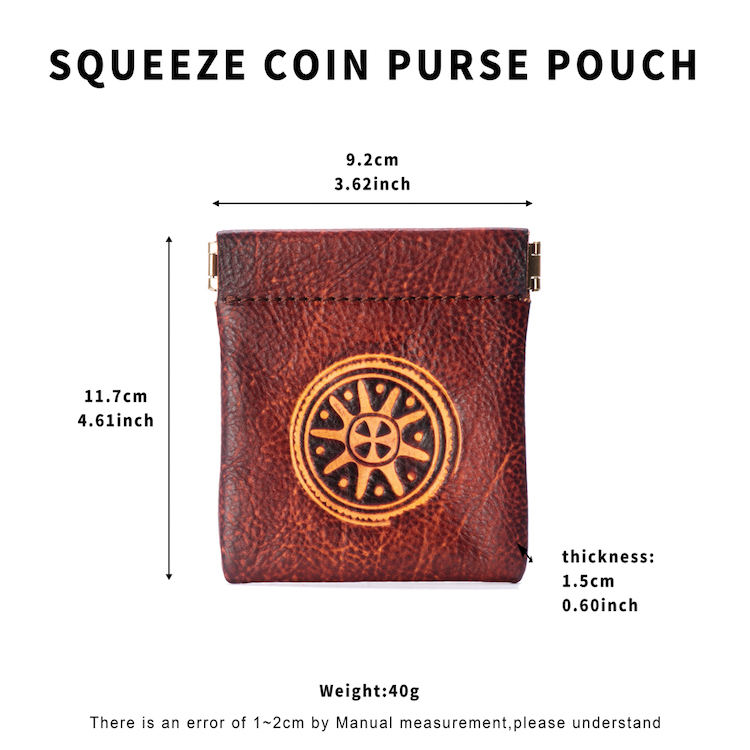 กระเป๋าใส่เหรียญหนังลายนูนพระอาทิตย์แนววินเทจสำหรับผู้ชายกระเป๋าเล็กใส่โลโก้แบบกำหนดเองพร้อมการปิดแบบบีบกระเป๋าใส่เหรียญทำจากผ้าทนทานเป็นของขวัญ