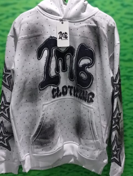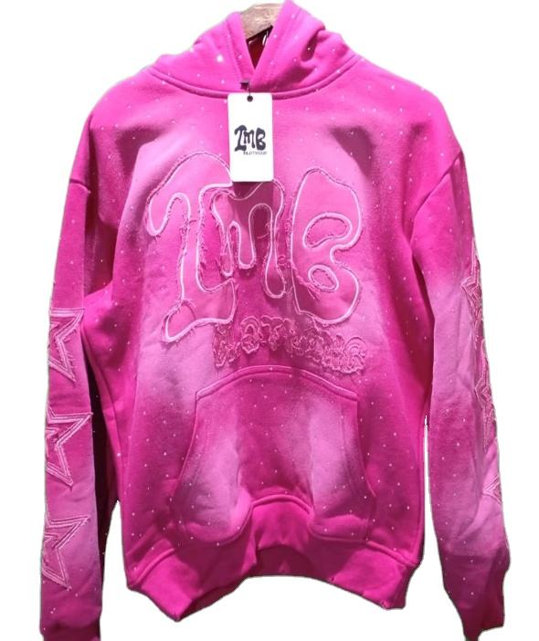 เสื้อมีฮู้ดแบบสวมหัวแขนยาวผ้าคอตตอน100% ผ้าคอตตอนผ้าปะติดพลอยเทียมปักลายปักลายพระอาทิตย์ตกใส่สบายโอเวอร์ไซส์ผ้าคอตตอน