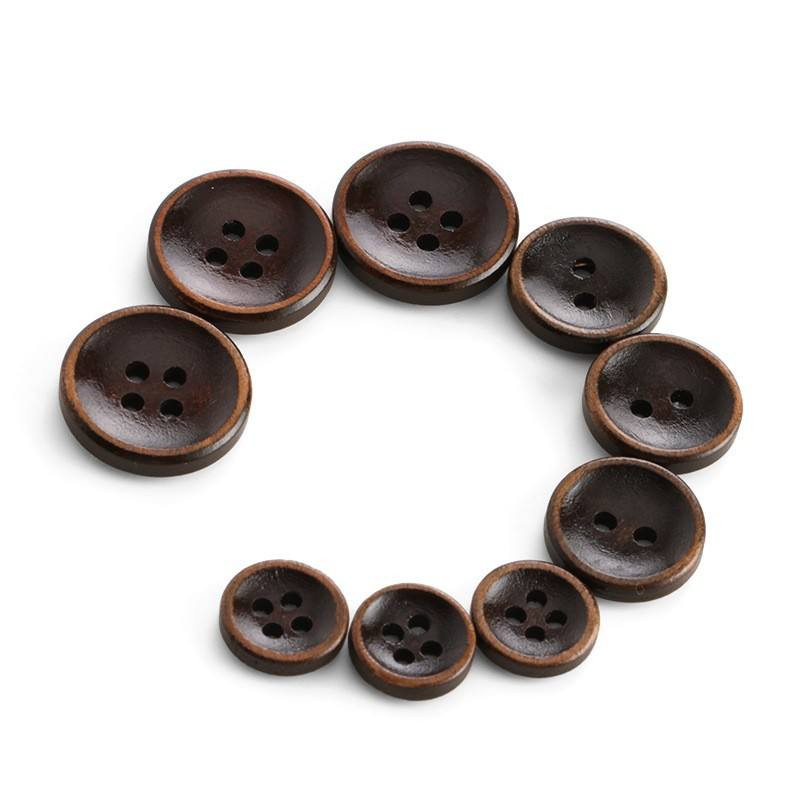กระดุมไม้ทำมือสำหรับเสื้อผ้าสไตล์วินเทจ กระดุมไม้แบบแบน 4 รู สำหรับเสื้อผ้าและงานฝีมือ