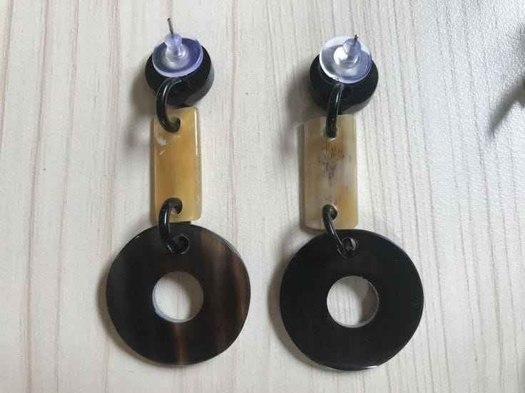 ต่างหูทรงดาบวินเทจทำจากเขาควายประดับเพชรและมุก สไตล์ชาติพันธุ์ สำหรับงานแต่งงานของผู้หญิง