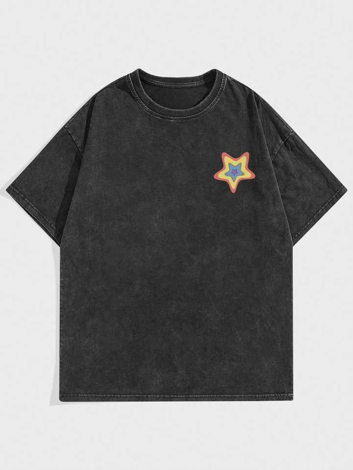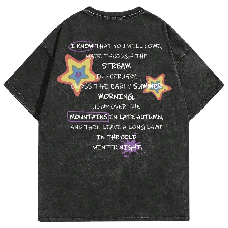 เสื้อยืดคอกลมผู้ชายผ้าฝ้ายถัก 100% สีพื้น ดีไซน์สั่งทำได้ สไตล์วินเทจ ล้างสีแบบแอซิดวอช สำหรับฤดูร้อน