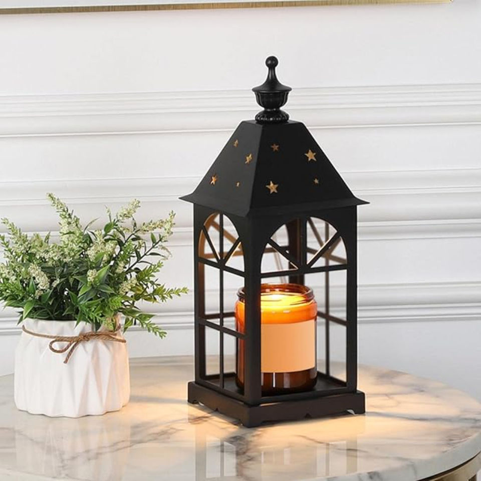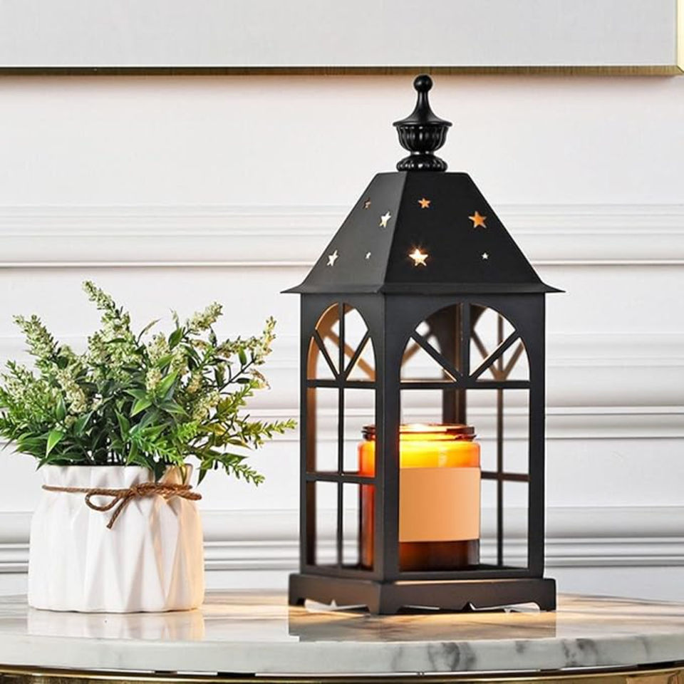 โคมไฟทีไลท์แนววินเทจโคมไฟหกเหลี่ยมโลหะสีดำตกแต่งบ้านสวยสำหรับงานแต่งงานฮาโลวีนและคริสต์มาสเดือนรอมฎอน