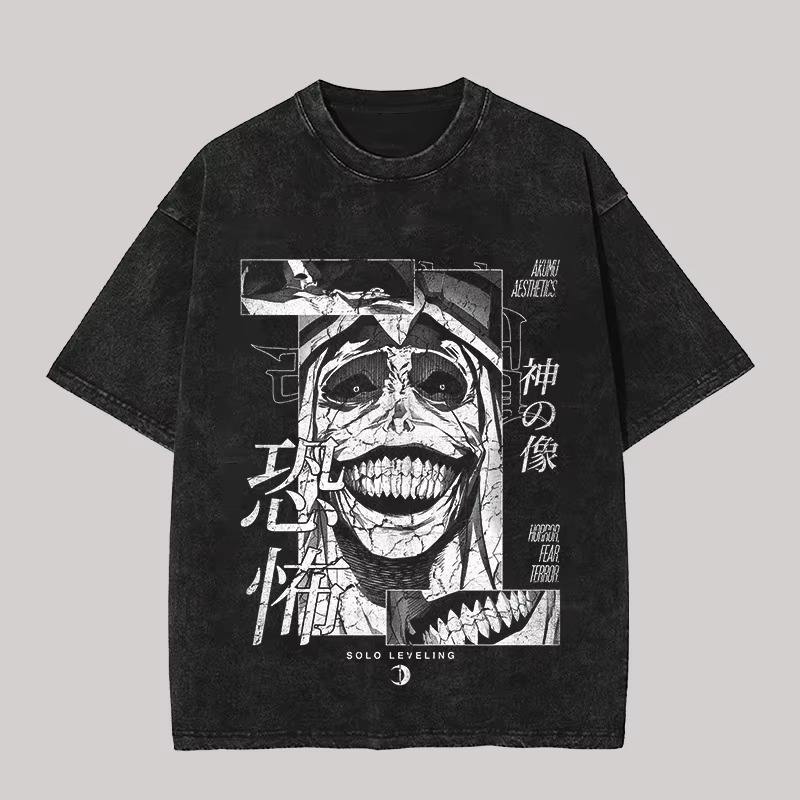 เสื้อยืดวินเทจ พิมพ์ลายโลโก้ผีแบบสกรีน ผ้าคอตตอนหนา ผู้ผลิตเสื้อยืดโอเวอร์ไซส์ลายกราฟิกสำหรับผู้ชายและผู้หญิง