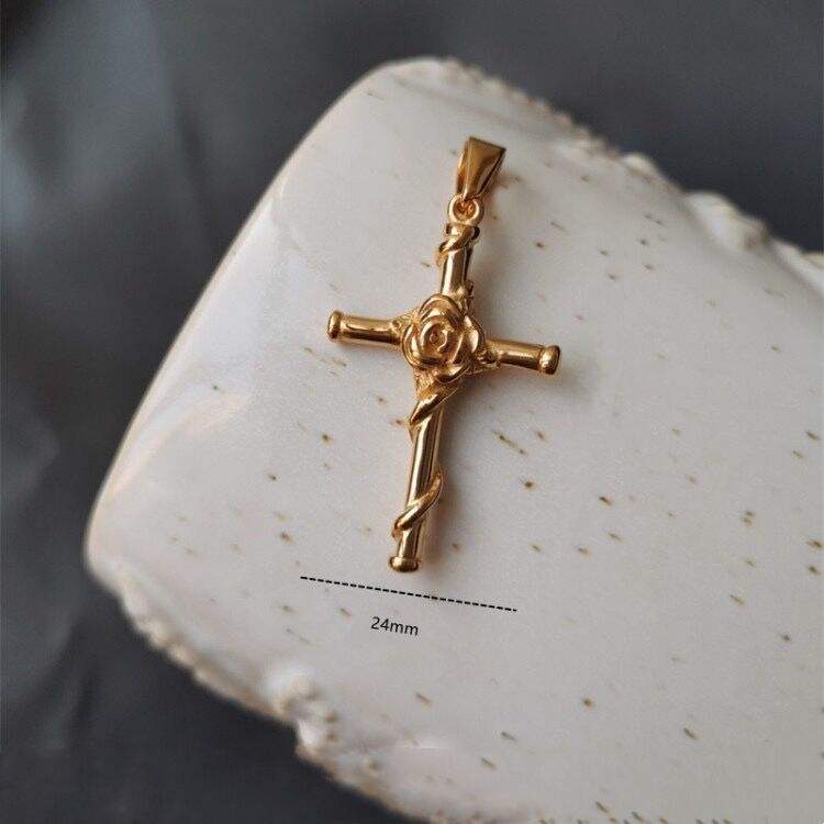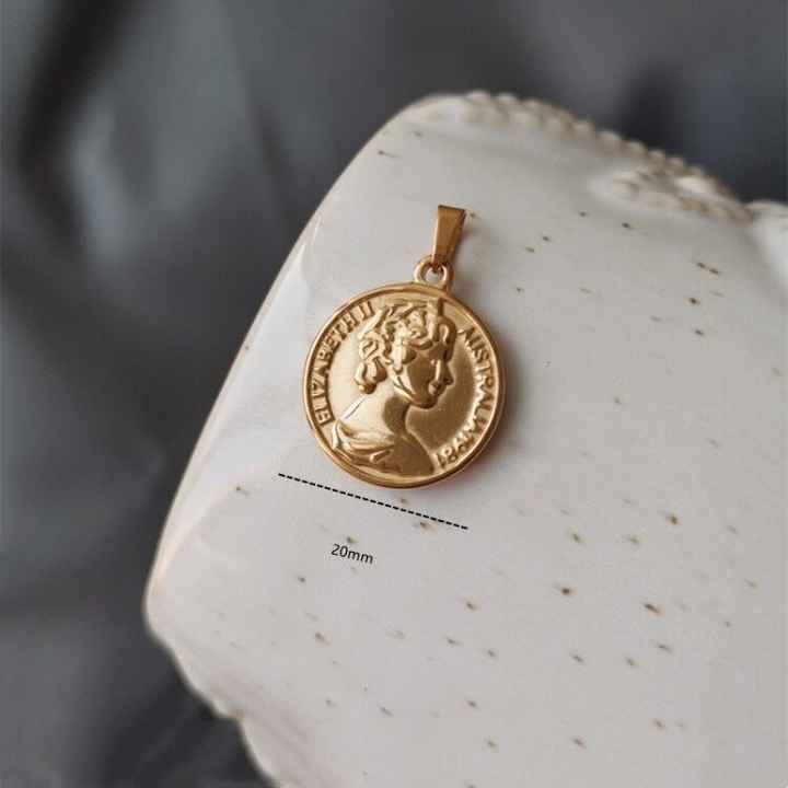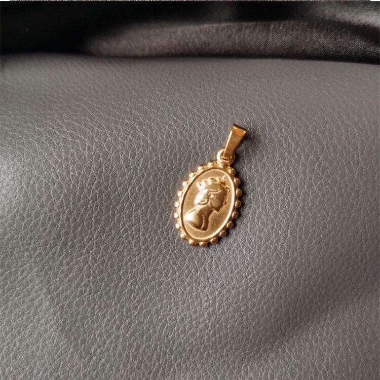 จี้เหรียญอลิซาเบธสไตล์วินเทจ,จี้เหรียญอลิซาเบธทองคำ18K เครื่องประดับ Virgin Mary จี้กางเขนดอกกุหลาบ