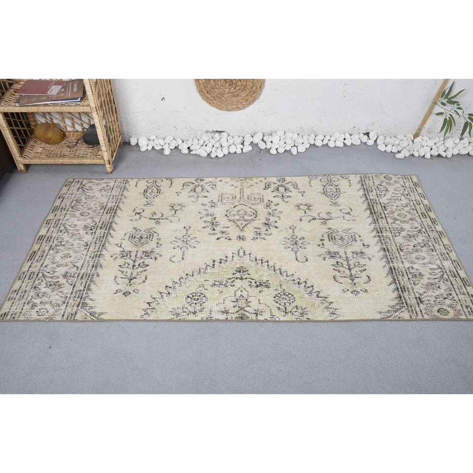 พรมปูพื้นสีเบจแบบดั้งเดิมแนววินเทจขนสัตว์สังเคราะห์ทรงสี่เหลี่ยมขนาด3x6ฟุตสำหรับทางเดินข้างเตียงวัยรุ่น