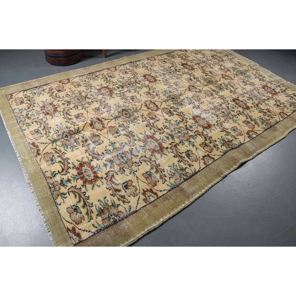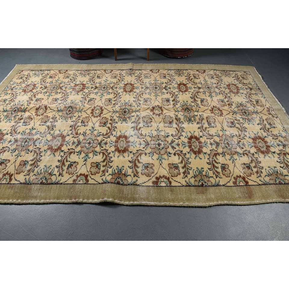 พรมขนสัตว์สไตล์ตุรกีวินเทจแบบดั้งเดิม6.2 x 9.7ft สี่เหลี่ยมผืนผ้าลายทางเดินยาง PP หลัง