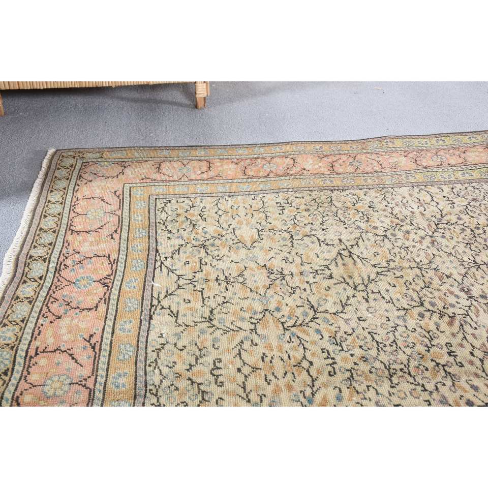 พรมขนสัตว์แบบดั้งเดิมวินเทจ4.8ft x 7.2ft พรมปูพื้นและชุดเย็บปะติดปะต่อกันสีเบจและสีชมพู