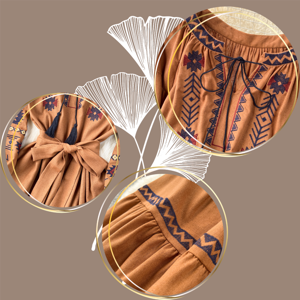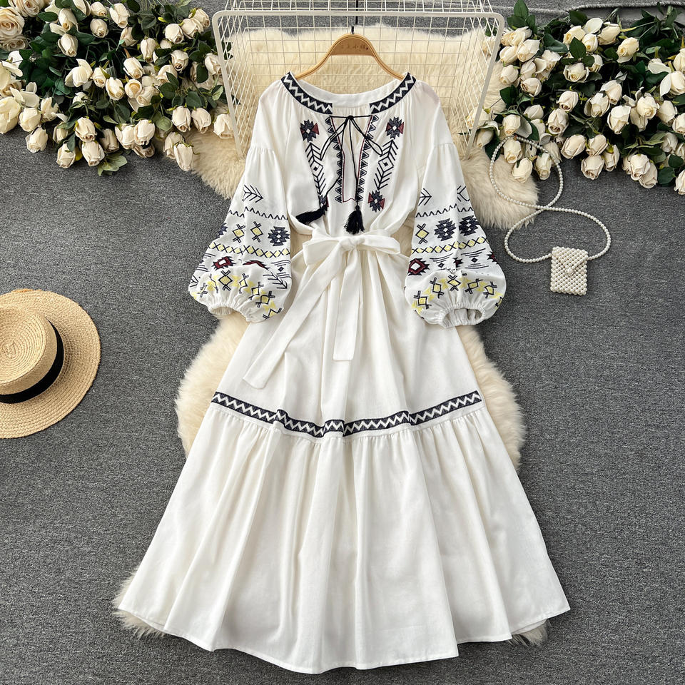 Vintage Tunic Slim Casual Dress For Women Puff Sleeve Empire Embroidery Lace Dress Bohemian style