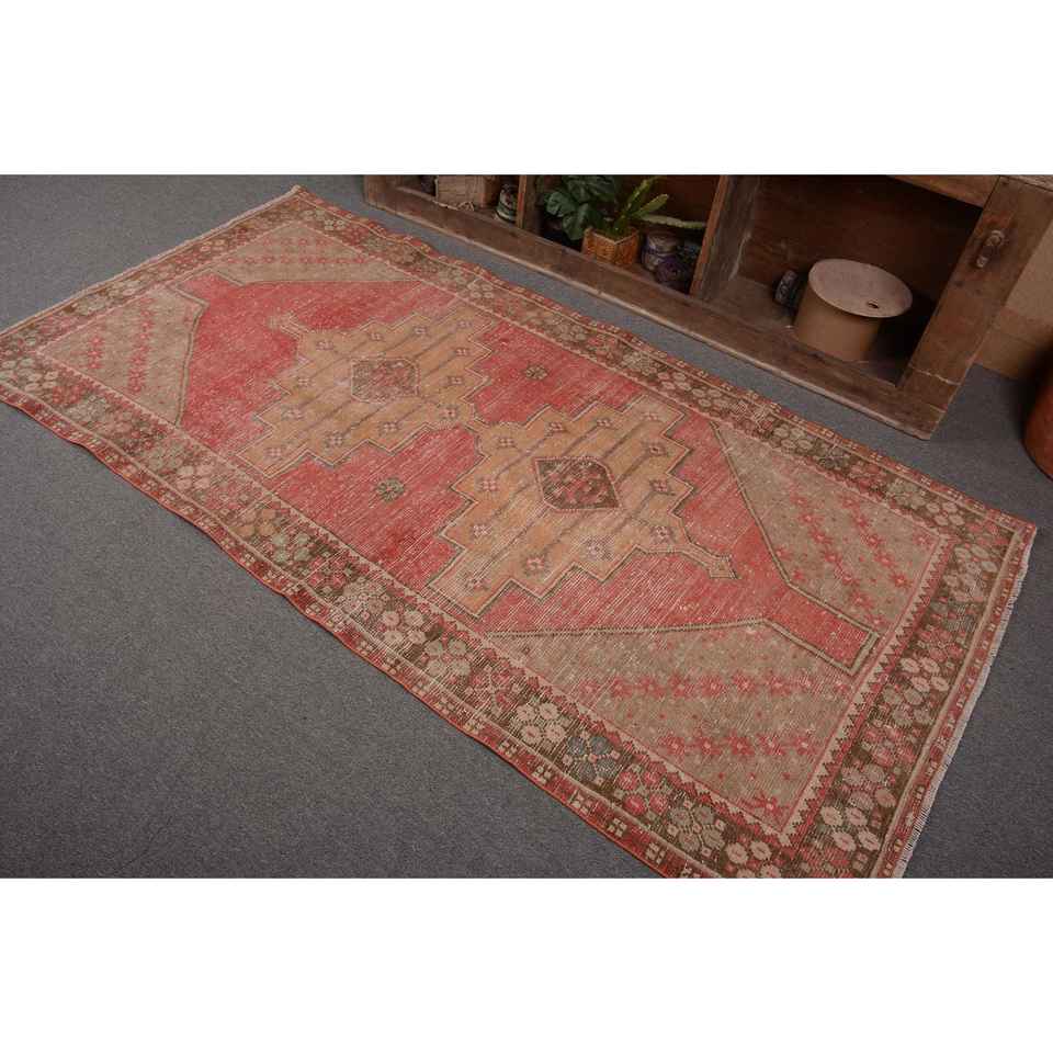 พรมสีเบจสไตล์โบฮีเมียนสไตล์วินเทจสไตล์ตุรกี3.8 x 7.6ft พรมขนแกะสำหรับห้องโถงห้องนอนพรมสี่เหลี่ยม